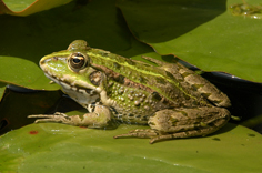 Les premiers animaux faciles à observer sont les nombreuses grenouilles présentes dans les jolis points d’eau parsemés de nénuphars. Il suffit de s’asseoir un moment au bord d’un étang et de les observer sans bouger; les voilà qui surgissent de toute part et se mettent à croasser bruyamment.