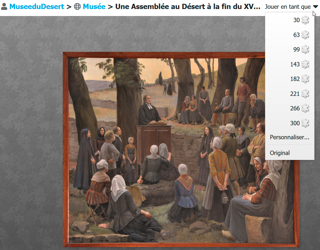 Vous pouvez régler le nombre de pièces et le degré de difficulté avant de démarrer le puzzle :