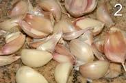 2) Peler et laver l’ail, le presser dans l’huile, mélanger.